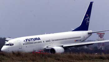 The jet, owned by Futura International Airways - a subsidiary of Aer Lingus - slewed across the main runway for 300 yards, but the pilot managed to guide it safely to a halt. It ended up on its belly, with some damage to the fuselage. Eight people received hospital treatment, including a woman with a broken ankle, while others, including the pilot, were treated at the airport. There were 189 passengers and a crew of six on board the jet which has been in operation for six months. "The door (fwd service) in front split open and luggage was hurled off the front section." See also