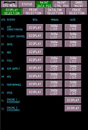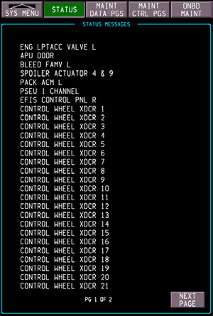 OverviewThe first thing to understand about this is that there is a lot of terminology and TLAs (Three Letter Acronyms) for this subject. Furthermore, Boeings own maintenance documents are not consistent in their terminology, for instance they sometimes refer to the "Onboard Maintenance System" which seems to be an amalgam of ONS and OMF. Anyway, here goes... The Onboard Network System (ONS) monitors the aircraft systems hardware and software for faults and health monitoring and sends alerts to pilots and maintenance staff via the enhanced digital flight data acquisition unit (eDFDAU). It can store over 75 flight hours of data and analyse and trend that data in-flight on its data file server called the Network File Server (NFS). Amazingly by October 2017 the ONS Operating System software was already up to update 7.1. The big advantage of ONS over previous systems is that it collects and sends data from all monitored systems for viewing by pilots or maint crews either on the flightdeck display systems and/or at maintenance base, rather than maintenance crews having to locate and interrogate or BITE check each individual system component many of which were located in the E&E bay. You get access to the ONS "website" either with the two inboard DU's of the MAX Display System (MDS) or a laptop/iPad via one of the two data ports, one on the flightdeck (underneath the data loader) and one on the NFS LRU in the E&E bay, or via WIFi. If accessing purely via the MDS you navigate through the pages and menus with the two selectors on the Forward Aisle Stand or P61 panel (under the dataloader). 737 MAX Onboard Maintenance Function The ONS and MAX Display System (MDS) integrate airplane data collected during flight with a new Onboard Maintenance Function (OMF) that consolidates maintenance data for view on the flight deck displays and on portable maintenance devices, such as tablets (there is an iPad app called Boeing ONS Maintenance that anybody can download from iTunes). OMF began with more than 1,700 requirements from Boeing and took two and a half years to develop, programmed in just 32,000 lines of Clojure code. The OMF can report over 6000 error codes but it also takes specific conditions and sequences, combines rules and events, manages dependencies, and aggregates fault conditions. For more details on the ONS see this article from Boeing Aero from 2014. Status Page737 MAX Maintenance Status Page Maintenance Data PagesThe maintenance data includes: • BRIGHTNESS • DISPLAYS • DPC DIGITAL INPUTS • DPC DISCRETE/POWER INPUTS • DPC DISCRETE OUTPUTS • EFIS CP TEST • MDS CONFIGURATION. • DISPLAYS • DPC DIGITAL INPUTS • DPC DISCRETE/POWER INPUTS • DPC DISCRETE OUTPUTS • EFIS CP TEST • MDS CONFIGURATION.