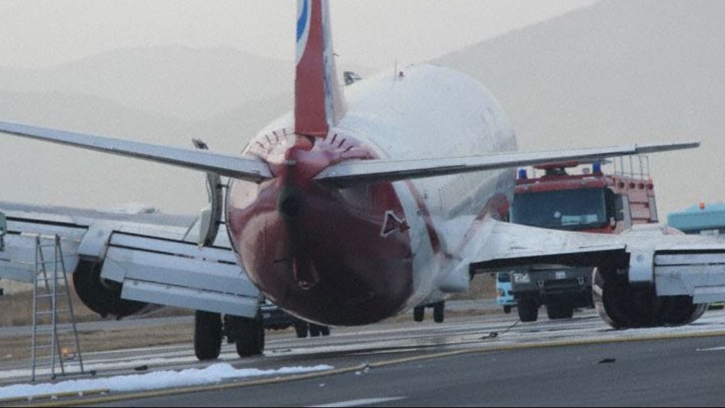 10 Dec 2016 - 737-400, JY-JAQ (27826/2694), FF 27/01/1995, operated by Safi Airways suffered a collapse of the right hand main landing gear at Kabul on runway 11 at 12:24L (08:24Z). The combination of a soft landing, at high speed and high airport elevation caused the torsion link of the shimmy damper remained in an extended vertical position and fail. The RH MLG collapsed causing the aircraft to skid and come to rest on the #2 engine. All 155 POB evacuated down the slides with no injuries. OAKB 100750Z 15009KT 6000 BKN040 09/03 Q1015 NOSIG RMK WHT WHT The operations of Safi Airways was suspended for a short time in September 2016 due to debts and taxes of AFN 1,152,774,691. According to a statement by Afghanistan Civil Aviation Authority, the decision to suspend the operations of the airline was taken by the Ministry of Finance of Afghanistan. Safi Airways is on the European Commission's airline blacklist, as part of a blanket ban on all Afghani carriers. However this aircraft was sub leased from from Jordan Aviation and was Jordanian-registered. 21 Dec 2018 - The Jordanian CARC published their final report into the right main gear collapse of Safi Airways 737-400, JY-JAQ, at Kabul on 10 Dec 2016. Significant extracts below: For a full analysis of 737 Classic MLG failures on landing please follow this link. |