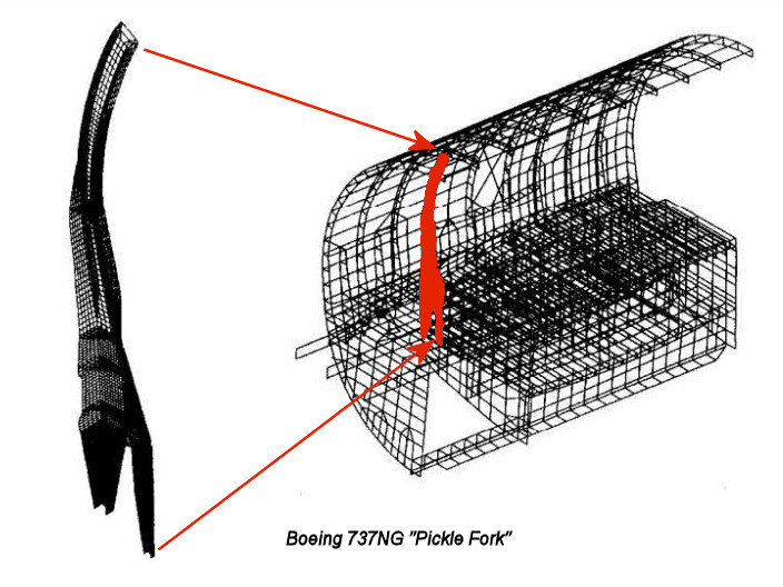 The Pickle Fork Photograph of a pickle fork in situ (photo Yonhap News) Photograph of a pickle fork crack (photo internet source unknown) More details from AD 2019-20-02 DiscussionIn September 2019, the FAA received reports of cracking discovered in the left and right hand side outboard chords of the station (STA) 663.75 frame fittings and failsafe straps adjacent to the stringer S-18A straps on multiple Boeing Model 737-800 airplanes during a passenger-to-freighter conversion. The affected airplanes had accumulated between 35,578 and 37,329 total flight cycles. Cracking in the STA 663.75 frame fitting outboard chords and failsafe straps adjacent to the stringer S-18A straps, if not addressed, could result in failure of a Principal Structural Element (PSE) to sustain limit load. This condition could adversely affect the structural integrity of the airplane and result in loss of control of the airplane. Related Service Information Under 1 CFR Part 51The FAA reviewed Boeing Multi-Operator Message MOM-MOM-19-0536-01B, dated September 30, 2019. This service information describes procedures for a detailed inspection for cracking of the left and right hand side outboard chords of the STA 663.75 frame fittings and failsafe straps adjacent to the stringer S-18A straps. This service information also provides procedures for reporting inspection results to Boeing. This service information is reasonably available because the interested parties have access to it through their normal course of business or by the means identified in the ADDRESSES section. FAA's DeterminationThe FAA is issuing this AD because the agency evaluated all the relevant information and determined the unsafe condition described previously is likely to exist or develop in other products of the same type design. AD RequirementsThis AD requires repetitive inspections for cracking of the left and right hand side outboard chords of the STA 663.75 frame fittings and failsafe straps adjacent to the stringer S-18A straps. This AD also requires repair of all cracking using a method approved by the FAA or The Boeing Company Organization Designation Authorization (ODA). This AD also requires sending a report of all results of the initial inspection to Boeing. Interim ActionThe FAA considers this AD interim action. The inspection reports that are required by this AD will enable the manufacturer to obtain better insight into the nature, cause, and extent of the cracking, and eventually to develop final action to address the unsafe condition. Once final action has been identified, the FAA might consider further rulemaking.